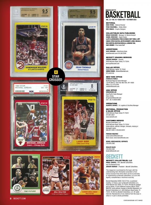 Step into the thrilling world of basketball collectibles and memorabilia with Beckett Basketball Magazine. We're excited to introduce you to this publication, your go-to source for all things related to basketball cards, collectibles, and the vibrant hobby of basketball memorabilia. Beckett Basketball Magazine, published by Beckett Collectibles LLC, is not just a magazine; it's your comprehensive guide to the world of basketball collectibles. As you explore the pages of Beckett Basketball Magazine, you'll find a world of content that caters to basketball collectors and fans alike: * Price Guides: Access up-to-date price guides for basketball cards, helping you stay informed about the value of your collectibles.
