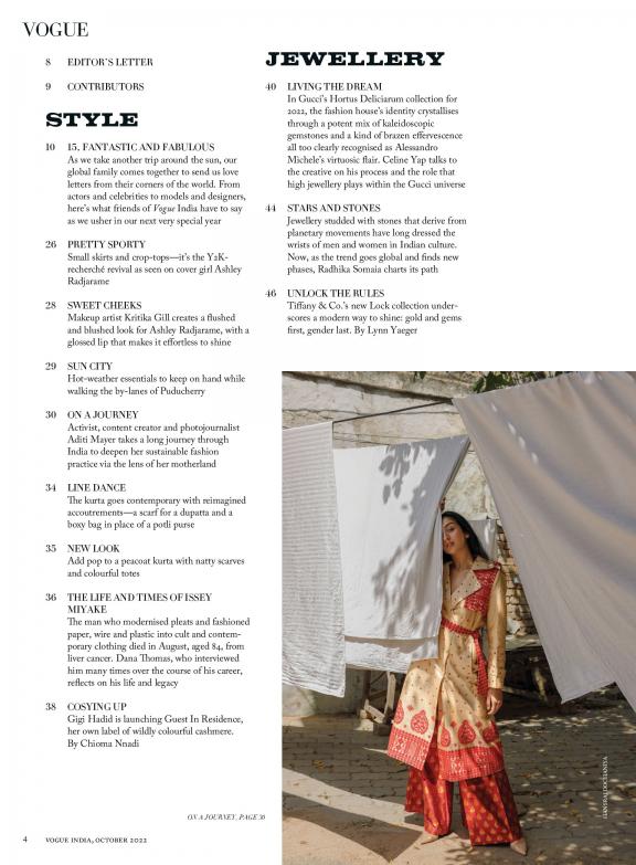 Vogue India is a monthly fashion and lifestyle magazine published by Condé Nast India Pvt. Ltd. It is the Indian edition of the popular American magazine Vogue. Vogue India was founded in 2007 by Priya Tanna. The magazine covers a wide range of topics, including fashion, beauty, style, travel, and culture. Vogue India also features interviews with leading fashion designers, models, and celebrities. Vogue India is known for its high-quality editorial content and its stunning photography. The magazine has won numerous awards, including the World Media Award for Fashion Journalism. In every issue, you'll find: * The latest fashion trends: From runway looks to street style, Vogue India keeps you up-to-date on the latest fashion trends. * Expert beauty advice: Vogue India's beauty experts will teach you how to look your best, inside and out. * In-depth style features: Vogue India helps you create your own personal style. * Travel inspiration: Vogue India takes you on a journey around the world, from the best hotels to the most hidden gems. * Cultural insights: Vogue India explores the latest art, music, and literature from India and around the world. * Interviews with inspiring people: Vogue India profiles leading figures from the worlds of fashion, beauty, and culture. Subscribe today and start your journey to becoming a fashion icon!!
