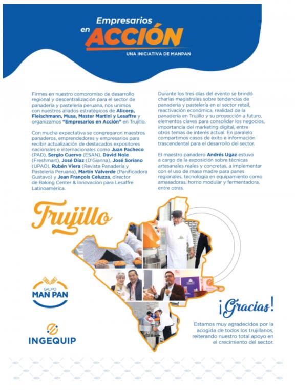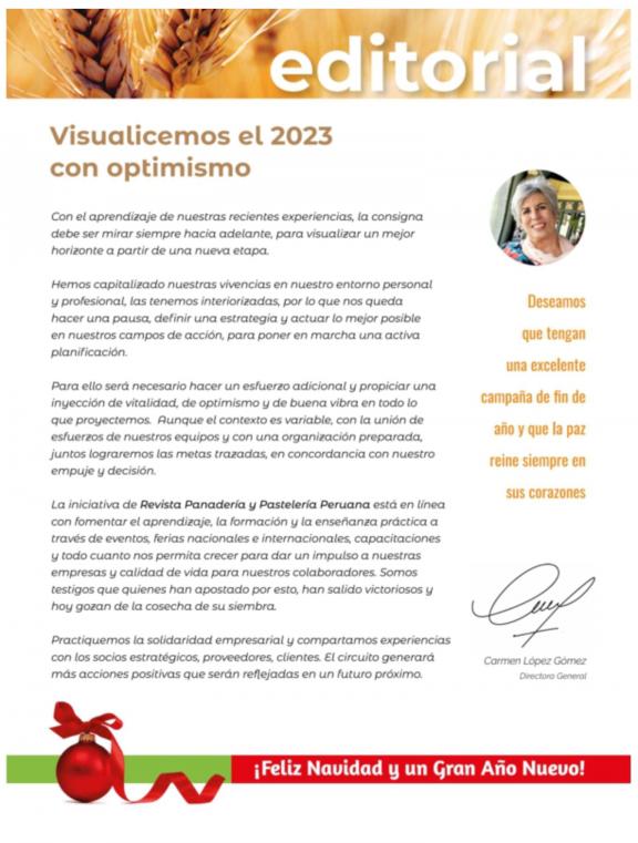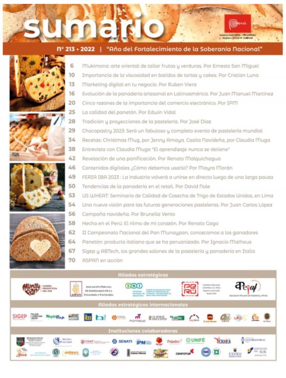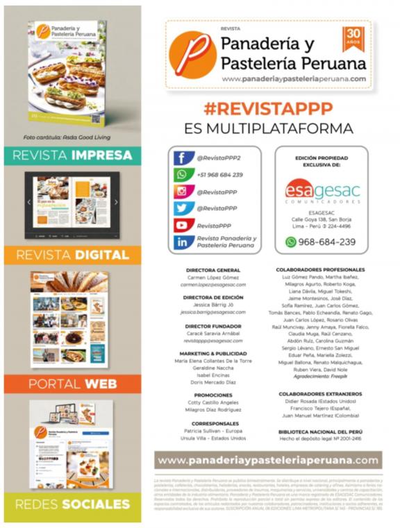 La revista Panadería y Pastelería Peruana nace el año 1991 y desde entonces se ha mantenido como el líder referente de la industria de la panificación, pastelería y afines, llevando información útil y de actualidad, acordes con las necesidades y exigencias de sus lectores. Con una diversidad de temas de interés contemporáneo: gestión empresarial, técnica, higiene industrial, marketing, ventas, recetas, entre muchos otros, contando con la colaboración de profesionales en el rubro, asimismo las más importantes instituciones nacionales e internacionales.