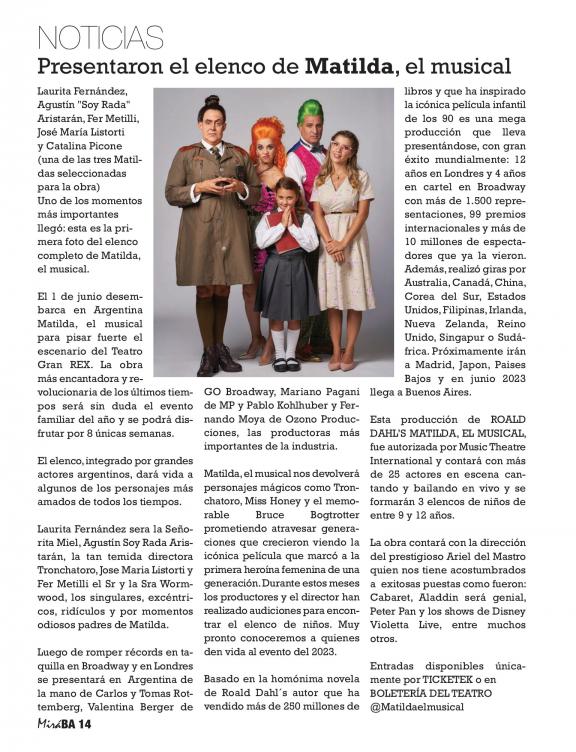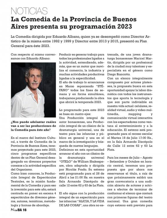 Mirá BA, la revista de Buenos Aires. Cultura y turismo, espectáculos, música, cine y sociales. Todo en una sola revista.