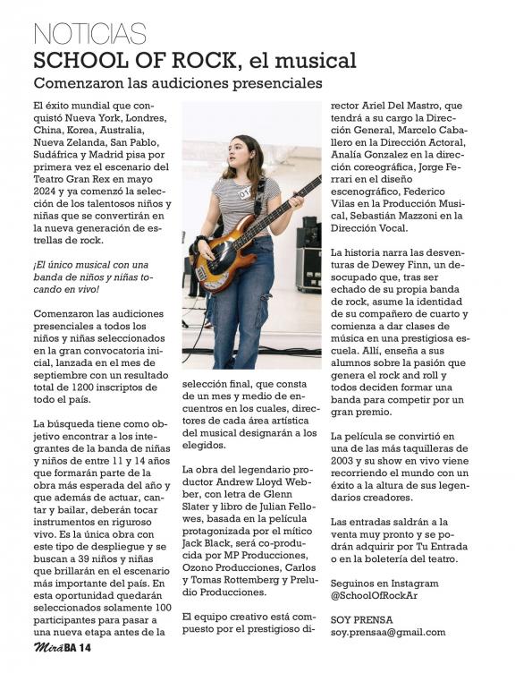 Mirá BA, la revista de Buenos Aires. Cultura y turismo, espectáculos, música, cine y sociales. Todo en una sola revista.