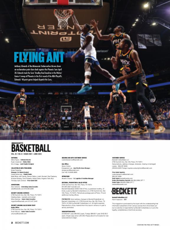 Step into the thrilling world of basketball collectibles and memorabilia with Beckett Basketball Magazine. We're excited to introduce you to this publication, your go-to source for all things related to basketball cards, collectibles, and the vibrant hobby of basketball memorabilia. Beckett Basketball Magazine, published by Beckett Collectibles LLC, is not just a magazine; it's your comprehensive guide to the world of basketball collectibles. As you explore the pages of Beckett Basketball Magazine, you'll find a world of content that caters to basketball collectors and fans alike: * Price Guides: Access up-to-date price guides for basketball cards, helping you stay informed about the value of your collectibles.