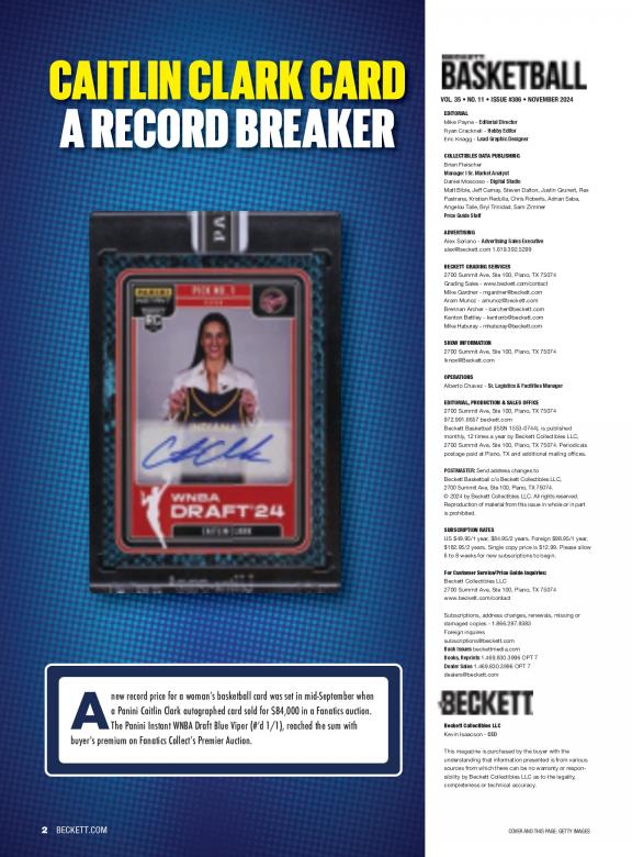 Step into the thrilling world of basketball collectibles and memorabilia with Beckett Basketball Magazine. We're excited to introduce you to this publication, your go-to source for all things related to basketball cards, collectibles, and the vibrant hobby of basketball memorabilia. Beckett Basketball Magazine, published by Beckett Collectibles LLC, is not just a magazine; it's your comprehensive guide to the world of basketball collectibles. As you explore the pages of Beckett Basketball Magazine, you'll find a world of content that caters to basketball collectors and fans alike: * Price Guides: Access up-to-date price guides for basketball cards, helping you stay informed about the value of your collectibles.
