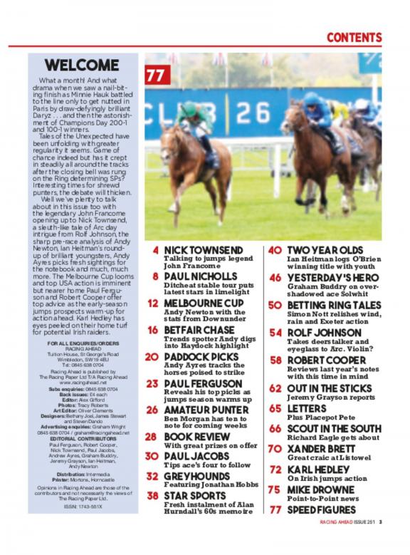 Racing Ahead was founded in 1975 by a group of horse racing enthusiasts who wanted to create a magazine that would provide comprehensive coverage of the sport. Racing Ahead is known for its in-depth reporting, its insightful analysis, and its stunning photography. It features articles on a variety of topics, including: * Race news: The latest news from the horse racing world, from upcoming races to industry trends. * Horse profiles: Profiles of horses, from up-and-coming stars to legends of the sport. * Trainer profiles: Profiles of trainers, from those who are just starting out to those who have won the Triple Crown. * Jockey profiles: Profiles of jockeys, from those who are just starting out to those who have won the Kentucky Derby. * Racecourse reviews: Reviews of racecourses, from those that are new to the scene to those that are steeped in history. Racing Ahead is a must-read for anyone who is interested in horse racing. It is the only magazine that provides comprehensive coverage of the sport, from news and profiles to racecourse reviews. Subscribe today and become part of the horse racing community!