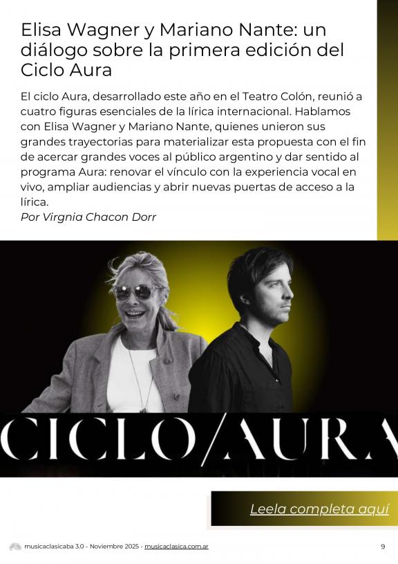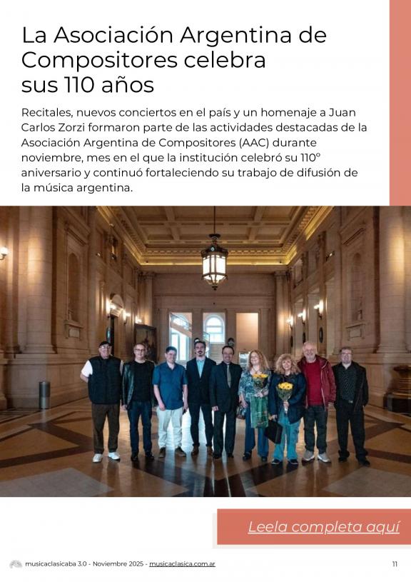Música Cásica 3.0 es un publicación mensual con un enfoque más actual y desestructurado del mundo de la música clásica. En Música Clásica 3.0 encontrarán información de agenda, notas y entrevistas a artistas destacados.