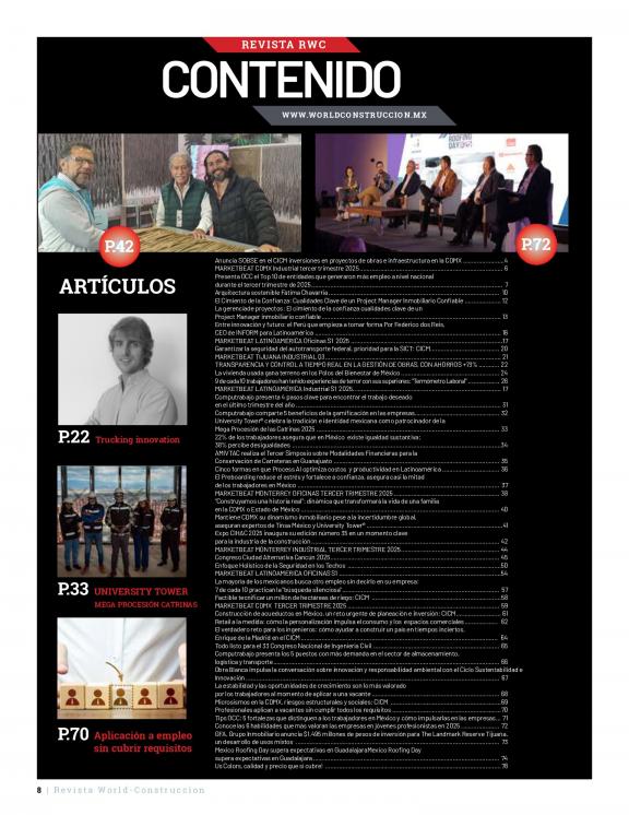 Revista especializada en información y tecnología para la industria de la construcción de México y en USA en formato virtual.