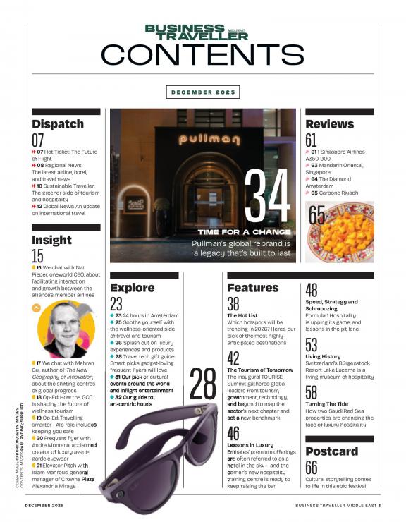 Business Traveller Middle East is the leading magazine for the corporate traveller. We aim to save you money and make your travelling life easier. Each edition has the latest news covering airlines, airports, hotels and car hire companies, regional and international destination features and updates on gadgets, technology and accessories.