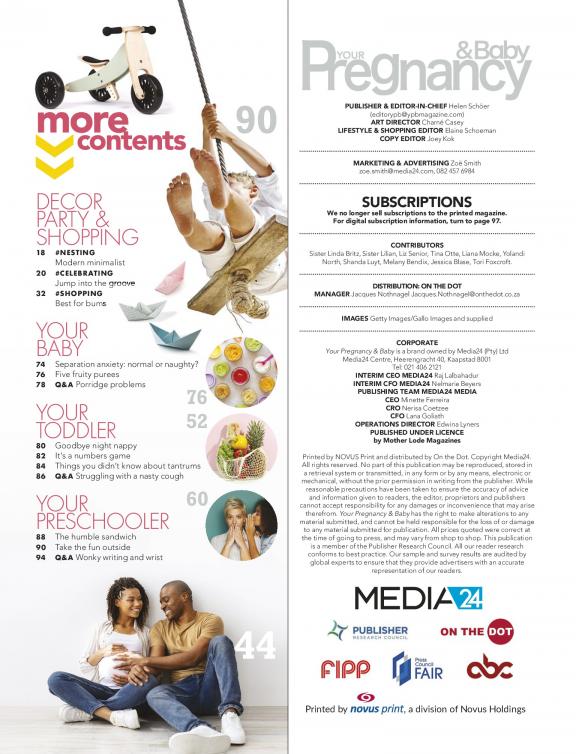 Your Pregnancy is the only local magazine that offers relevant, credible and accurate information on all aspects of pregnancy. Its local and international experts answer all questions quickly and respectfully. The magazine acknowledges pregnant women’s need to look and feel good. They are concerned about their baby’s health and wellness, but also care about their own. The magazine provides all the info that’s needed, as well as the latest fashion and beauty trends, health issues and exercises. It covers all aspects of pregnancy. The team loves what it does – and it shows.