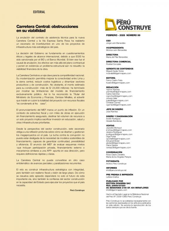 PERÚ CONSTRUYE es la revista que refleja la actividad de la construcción en Perú